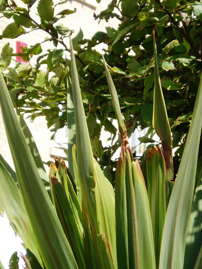 Phormium with damaged leaves